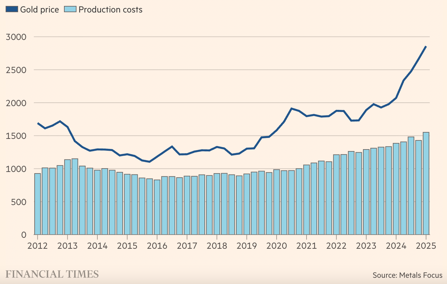 Les coûts de production des mines sont en grande partie fixes : les coûts de l’équipement, énergie, salaires, frais d’exploitation ne varient pas directement dans la même proportion que le prix de l’or.